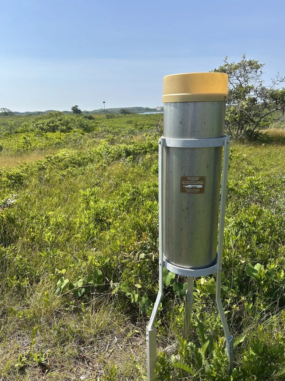 One important aspect of our weather is precipitation. To help us understand precipitation patterns on Nantucket and how they fit into regional and national pictures, the Linda Loring Nature Foundation (LLNF) has served as a precipitation center for the island since 2014. We monitor precipitation with multiple, complementary projects. Since 2014, we’ve been taking daily precipitation measurements as part of the Collaborative Rain, Hail, and Snow Network (CoCoRaHS), a national community science network started by the Colorado Climate Center at Colorado State University in 1998. The strength of this data set lies with the thousands of monitors collecting data with the same exact equipment (rain gauge) while using the same set of standard protocols in all 50 states (plus Canada and the Bahamas). The data collected are then publicly available for anyone to use. Users include the National Weather Service, emergency managers, insurance adjusters, and the USDA, among others.